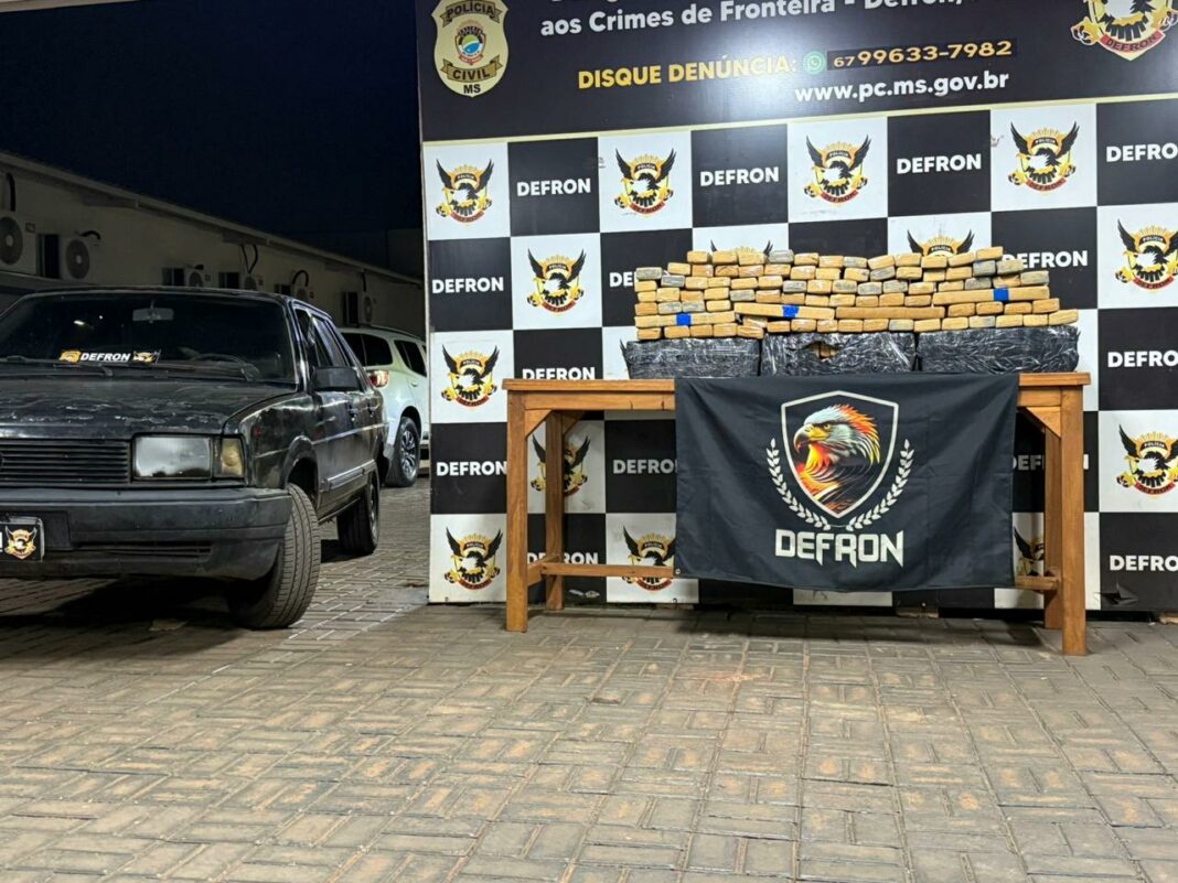 No interior do automóvel foram encontrados 174 quilos de maconha. O condutor foi preso em flagrante e levado para a DEFRON, onde foi autuado por tráfico de drogas.