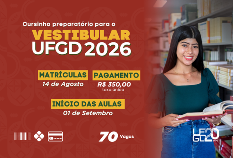 A partir desta quinta-feira, dia 14 de agosto de 2025, estarão abertas as matrículas para o Cursinho Preparatório para o Vestibular da UFGD (Universidade Federal da Grande Dourados) e Enem (Exame Nacional do Ensino Médio), promovido pelo Centro de Formação da universidade. As vagas são limitadas e as inscrições serão feitas exclusivamente online, pelo link https://forms.gle/LsyESwtFsF1tDN6M7, que será liberado às 8 horas.