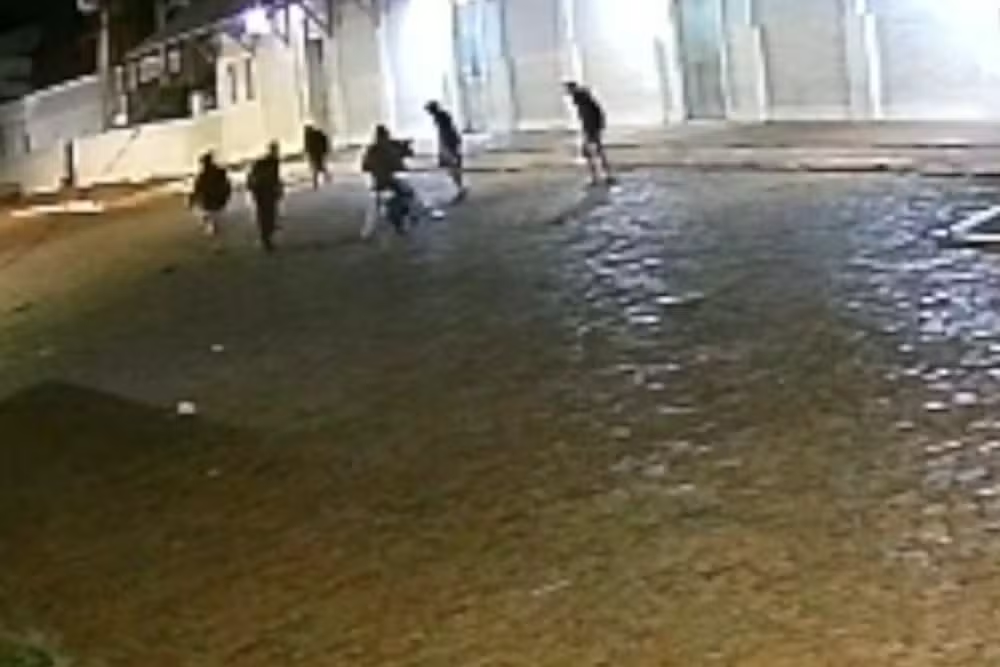 O jovem e outro rapaz foram agredidos por sete homens no sábado (9), na Esplanada Ferroviária. Câmeras de segurança registraram o momento em que o grupo se aproxima das vítimas, que estavam perto de uma motocicleta.