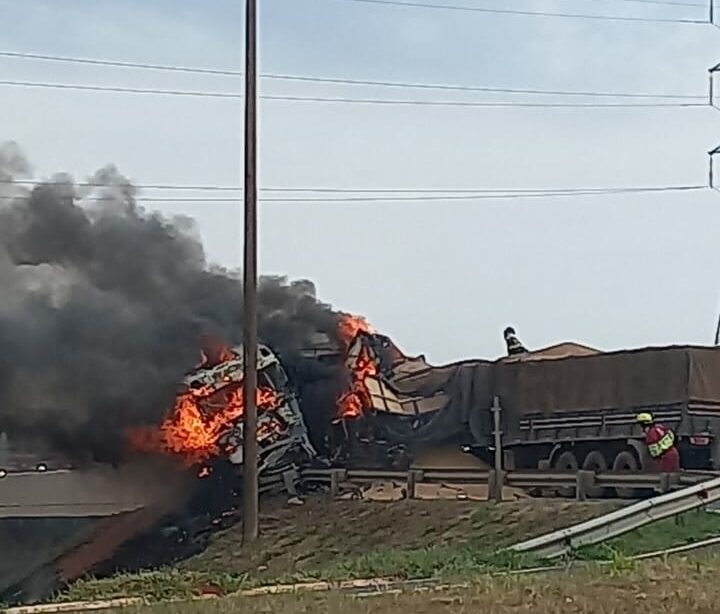 Um motorista acabou morrendo carbonizado na manhã dessa segunda-feira (29), em Campo Grande, em um acidente envolvendo duas carretas no viaduto da rodovia federal BR-163 sobre a BR-262, na altura do bairro Jardim Noroeste.