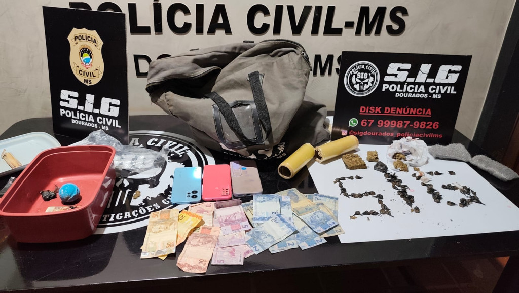 Quando a equipe chegou ao local, P.A.M. e o menor tentaram esconder o ilícito, porém, sem sucesso. Os policiais apreenderam dinheiro, celulares e material para embalar droga e porções de maconha e crack.