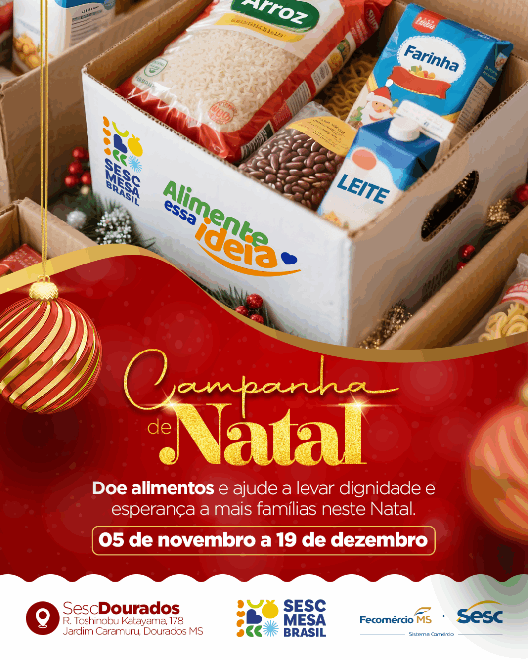 O Sesc Dourados iniciou a Campanha de Natal 2025 com o objetivo de arrecadar alimentos não perecíveis para famílias em situação de vulnerabilidade.