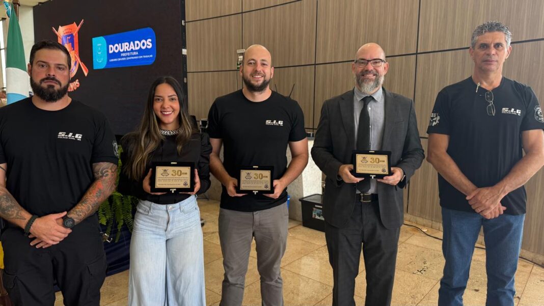 Na ocasião, o Delegado Regional – Adilson Stiguivitis Lima, o Delegado chefe da Seção de Investigações Gerais/Núcleo Regional de Inteligência (SIG/NRI) – Lucas Albé Veppo e a Delegada Titular da DAM – Ariana Gomes Albé, foram presenteados com uma placa comemorativa. A Polícia Civil parabeniza a Guarda Municipal de Dourados por seus 30 anos de existência e saúda a parceria ao longo desse período, destacando a importância da instituição para a segurança pública da cidade.