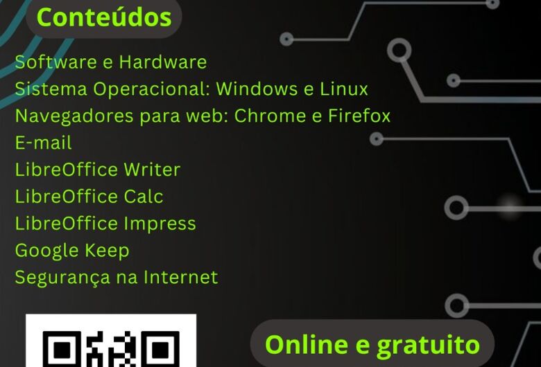 Serão ofertadas 100 vagas para os 100 primeiros inscritos, sendo que os demais ficarão na lista de espera, conforme ordem da inscrição. O curso é voltado para pessoas com idade mínima de 16 anos, que queiram se familiarizar com o mundo da tecnologia e compreender os conceitos básicos de informática, como o uso de softwares de escritório, navegação na internet e segurança da informação. As aulas, que serão ONLINE, vão de 14 de março a 27 de junho.