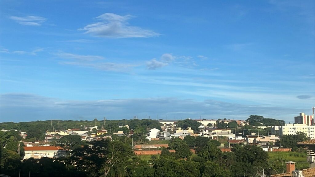 Em Campo Grande, a quarta-feira será de sol com muitas nuvens, com pancadas de chuva à tarde e à noite, ficando com mínima entre 20°C e 22°C e máxima variando entre 28°C e 30°C. Na quinta-feira, os termômetros seguem em patamar parecido, com mínima de 21°C e máxima de até 29°C.