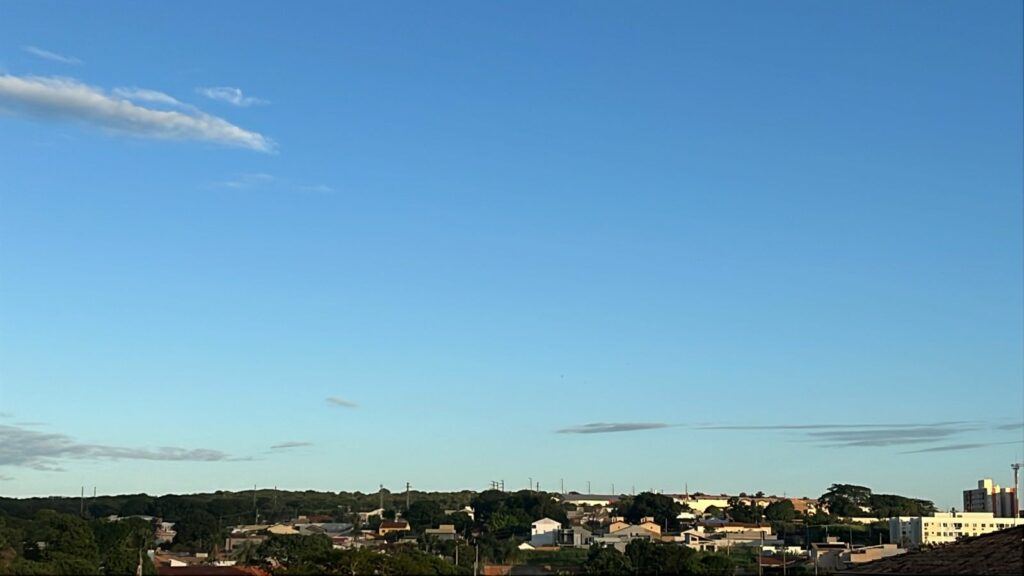 O tempo deve mudar gradualmente em Mato Grosso do Sul nos próximos dias. Depois de um início de semana com sol e calor, a aproximação de uma frente fria aumenta a instabilidade atmosférica e pode provocar chuvas fortes, raios e rajadas de vento em diferentes regiões do estado entre terça-feira (24) e quinta-feira (26).